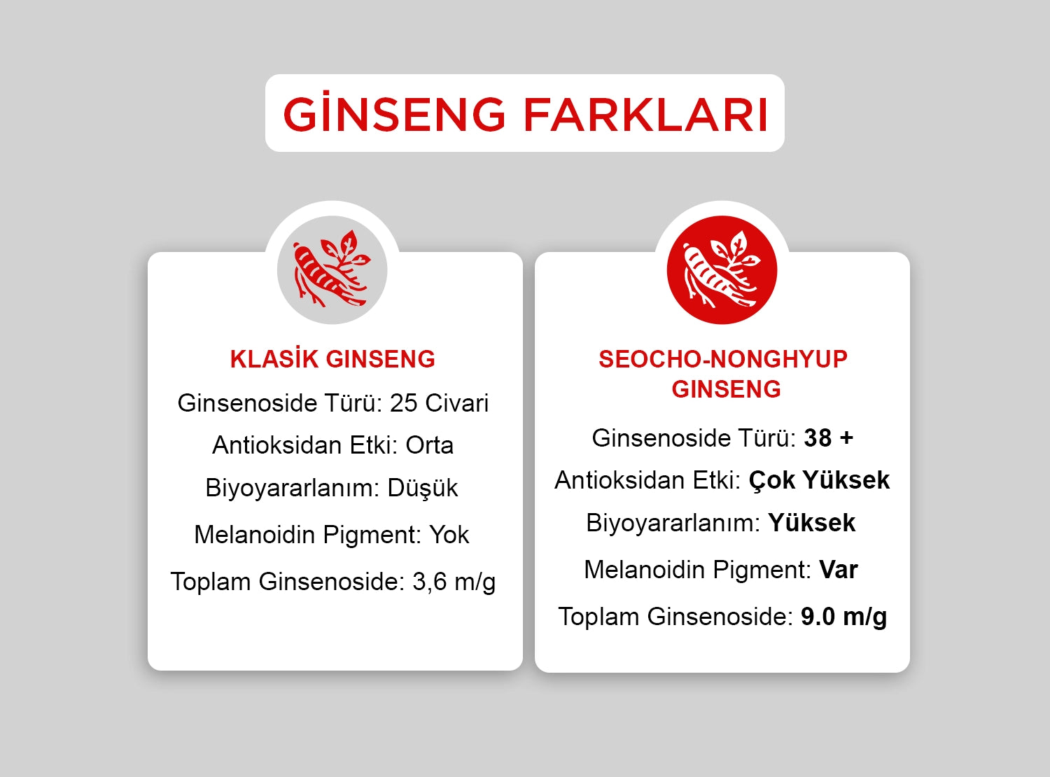 Seocho - Nonghyup Kırmızı Ginseng, klasik ginsenge göre belirgin şekilde farklı ve daha etkilidir.